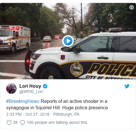 Media captionChris Togneri, a spokesman for the Pittsburgh Police Department: "Multiple casualties - three officers shot"