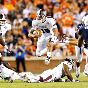 QB Dak Prescott, Mississippi State: He's a Heisman Trophy contender because of more than his eerie similarities to Tim Tebow. Both QBs played under Dan Mullen and wear No. 15 after all. Prescott is big, runs hard, has a cannon for an arm and has the leadership to match. And did we mention he's done the impossible and lifted State to No. 1 in the polls? -- Alex Scarborough