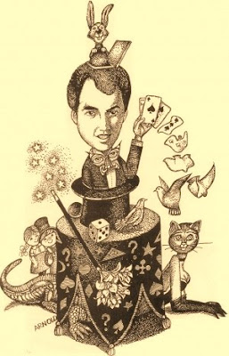 Everyone was pleased, and the Magician provided a first-class conjuring show, with rabbits coming out of hats, flags appearing from nowhere, and one thing turning into another. The people were delighted.