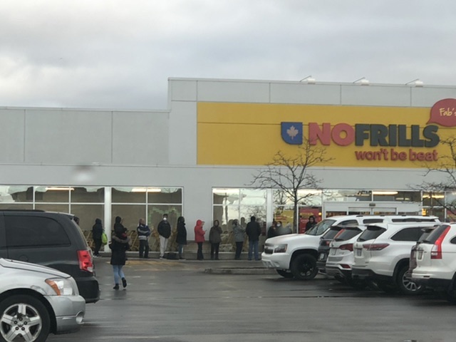 Went to walmart at 8am, it was like christmas eve all I needed was bread . Everyone got toilet paper and water in their cart I left. Went to freshco packed as hell lineups going down the aisle, shoppers toilet paper is 14.99 for a roll of 24 :scust:, went to no frills lineup to enter the store :dahell:. Went to longos lineups going down the aisles