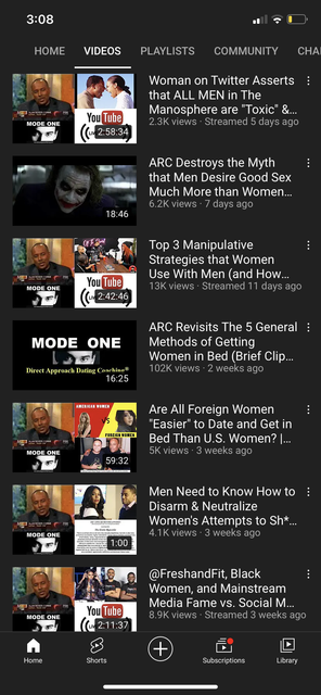 Same with AMS, he has more self improvement vids, but again, the number of those pale in comparison to the number of videos about women.