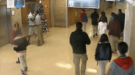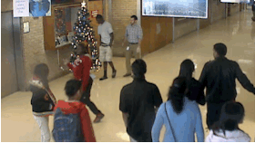 A school security video obtained by The News shows Porzio and Turner walking down a hallway toward the main entrance. During the walk, Porzio touches Turner on the back several times, points toward the front door and exchanges words with him.