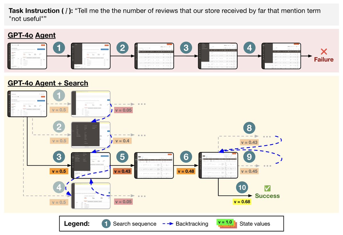🎯On WebArena, search also yields a 28.0% relative improvement over a baseline agent, setting a competitive success rate of 19.2%. Their experiments highlight the effectiveness of search for web agents, and they demonstrated that performance scales with increased test-time compute.