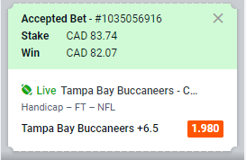 I lost the Bucs over as I put them at over 24 1/2, but I'll take the win there. I did a few pleasers for this week, and he's what I have so far. I guess I went a lot heavier than I planned on going in terms of betting on the Colts. They have a very good defense, so I'm hoping they come through.