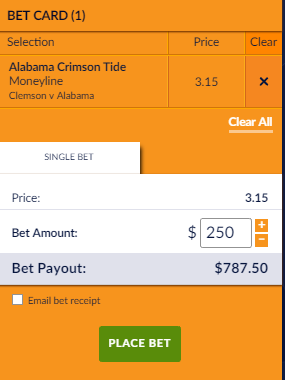 My heart says bama but the service plays are favoring Clemson and the under :patrice: