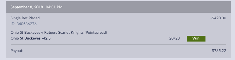 On my TCU bet from last night I just need Clemson to continue what they're doing at I can win $56. I'll take that and try again next week.