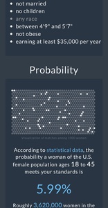 According to statistical data, the probability a woman of the U.S. female population ages 23to 32 meets your standards is