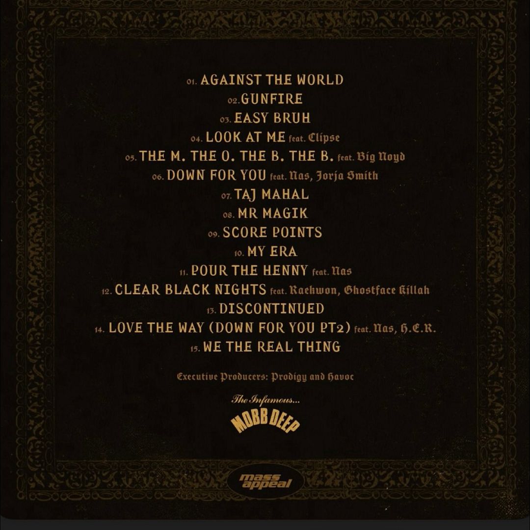 The feature list looks legit. Nas on not one, not two, but THREE songs. Ghostface Killah, Raekwon, Kool G Rap, H.E.R, Big Noyd. I can’t see any of these artists half-assing or bringing anything less than their best for the final Mobb album.’