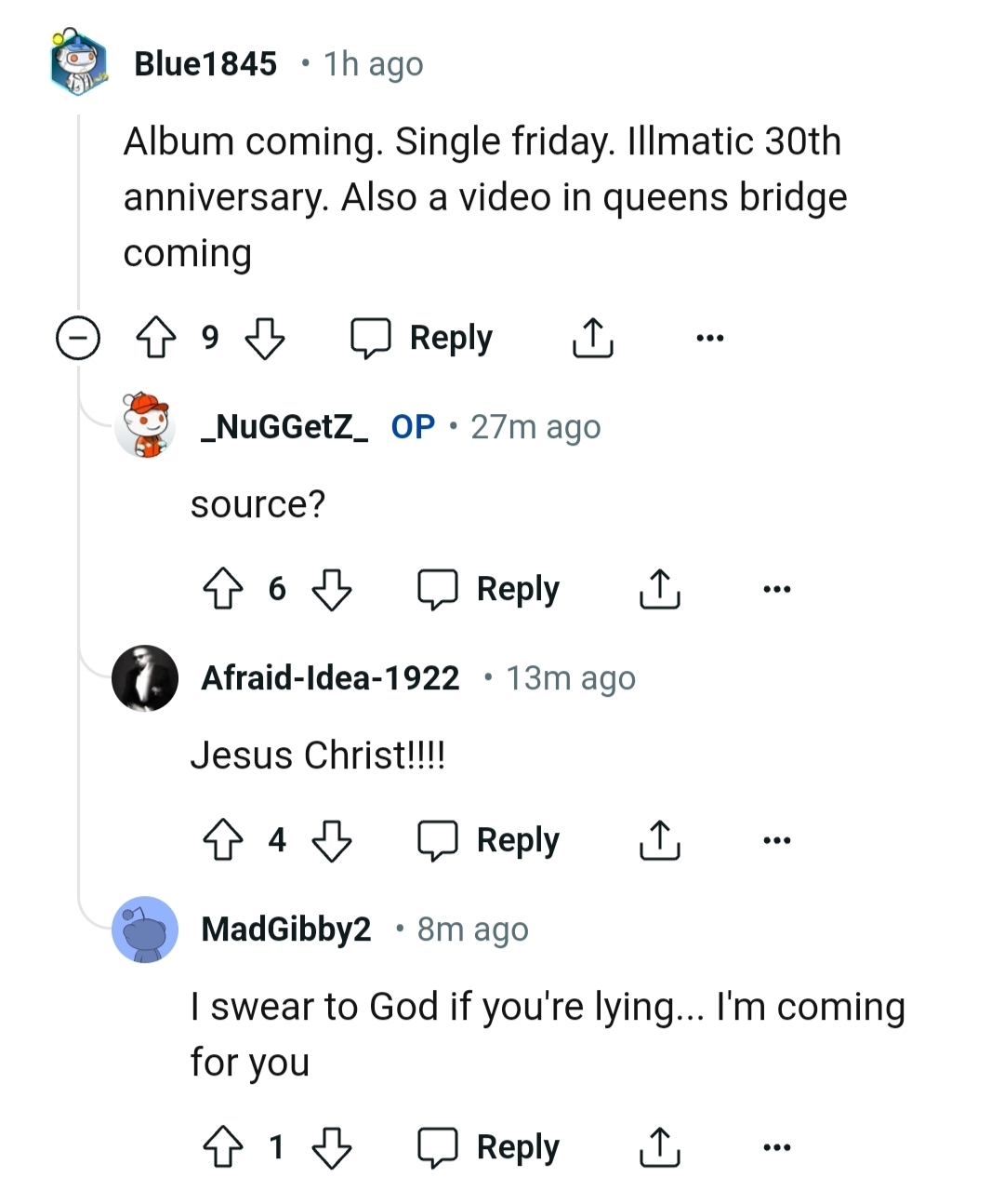 Hip Hop wants a full album, with a Rakim featureJust give us an EP and we'll be good. Neither needs the money so do it for hip hop.