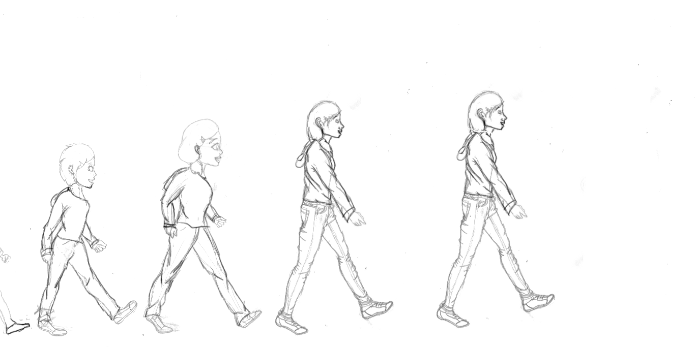 Wanted one character drawn in different styles like the evolution of man, she starts out as simply geometric shapes and goes up to near realism. Gotta tweak a couple of things in sketchbook pro like the size of some of the hands and heads, their relative size to each other, and positioning but other than that I like it so far :ehh: