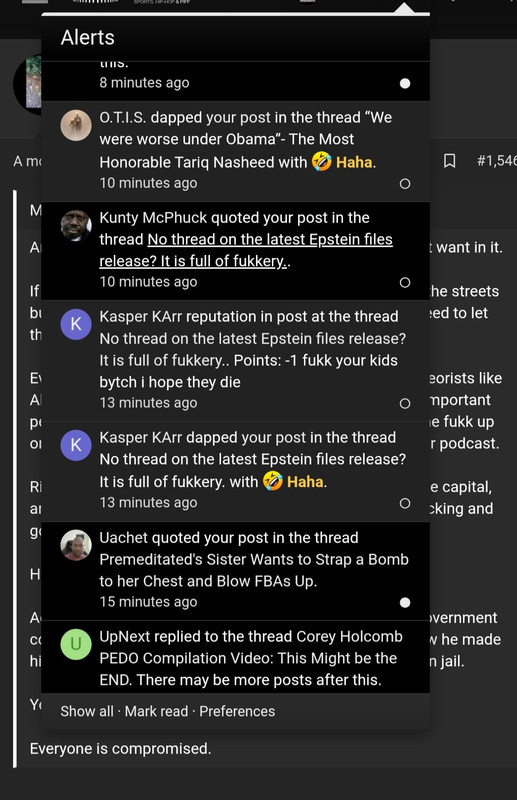 thats what my notifications have been looking like lately.. i made some anti-droolset thread and dude jumped in to call you a dog fukker. i asked him to not do that shyt in my threads and he's been wanting me to die/get aids/get hit by a car/be white/fukk a dog ever since. dude has some serious screws loose