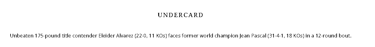 "In the co-main event we have a former world champion in Pascal who still believes he can be world champion. He will have a tough assignment with Alvarez, a fighter who just proved he belongs with the best in the world with his win over Lucian Bute. If he beats Pascal he will have beaten two of the best stars that Canada has ever produced in back-to-back fights. He will prove to be a threat to anyone in the future.''