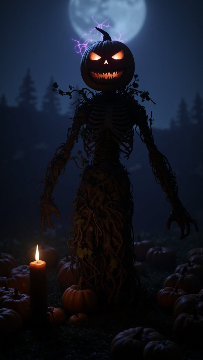 [SUBJECT] reflected in the still waters of a Haunted Forest. Twisted branches, skeletal trees, and a full moon create an eerie backdrop. The reflection shimmers with an unnatural glow of [COLOR1] and [COLOR2]