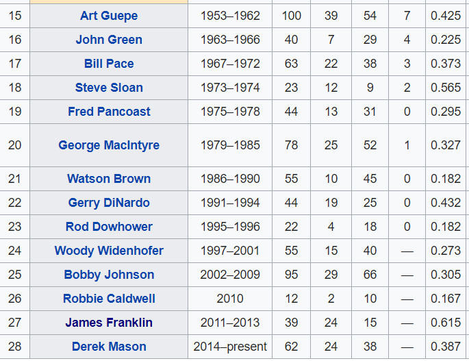 third highest winning percentage in the past 35 years
