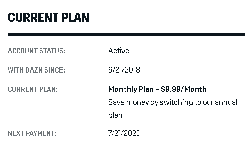 who pays 20 for DAZN? :huh:...as of June 30 2020 its always been 9.99 a month for me