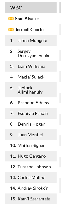 160 is low key a trash ass division talent wise. You got Charlo, GGG, and Andrade, maybe Derevyanchenko. After that the talent level falls off a cliff.