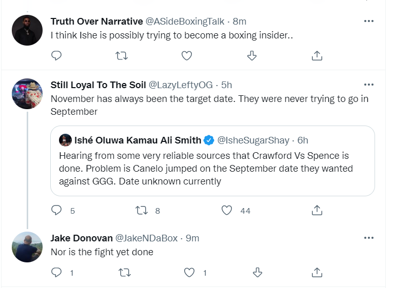 Do you think he ever posted Bud must fight on Showtime?? While Bud was fighting Scrubs Spence was fighting all the Top fighters collecting all the belts N zero Smoke for a Khan fight ON PPV … Spence the Clear Aside with the buys to prove it N for 4-5 years not a peep bout what nikkas must do to