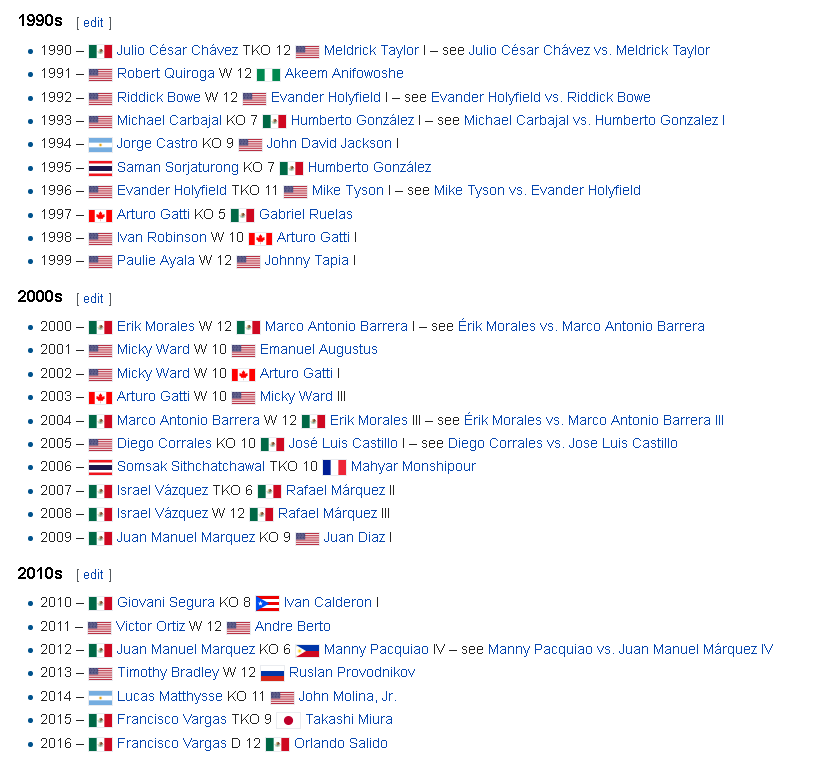 here's a screenshot of the fights of the years from the 90s up