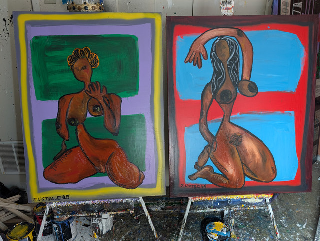 I'm telling you being a straight black man in the art world is tough and you catch hell just for showing your appreciation of the black female physique. I don't sit up and only paint nudity. I paint over shyt as well.