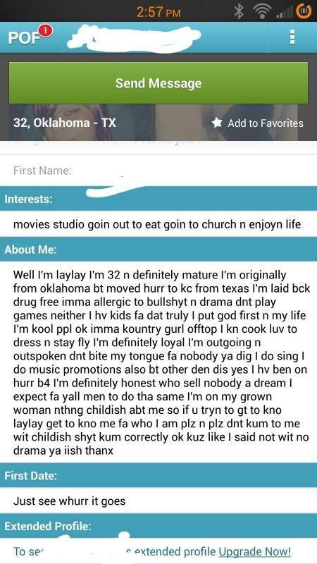 Just as the thread title states. She message me today on POF. When I go look at her profile I see this.